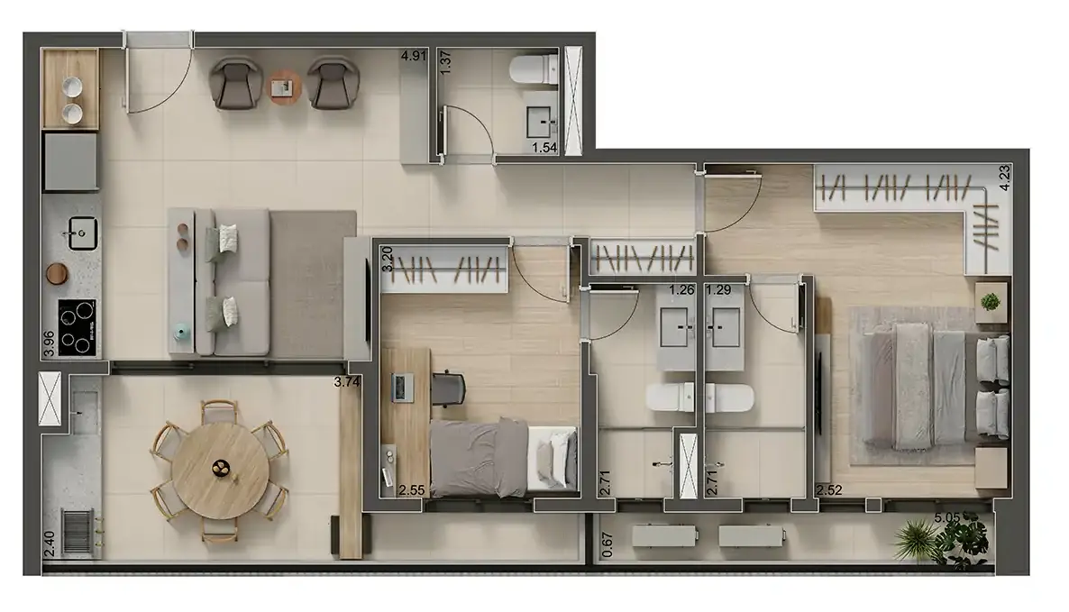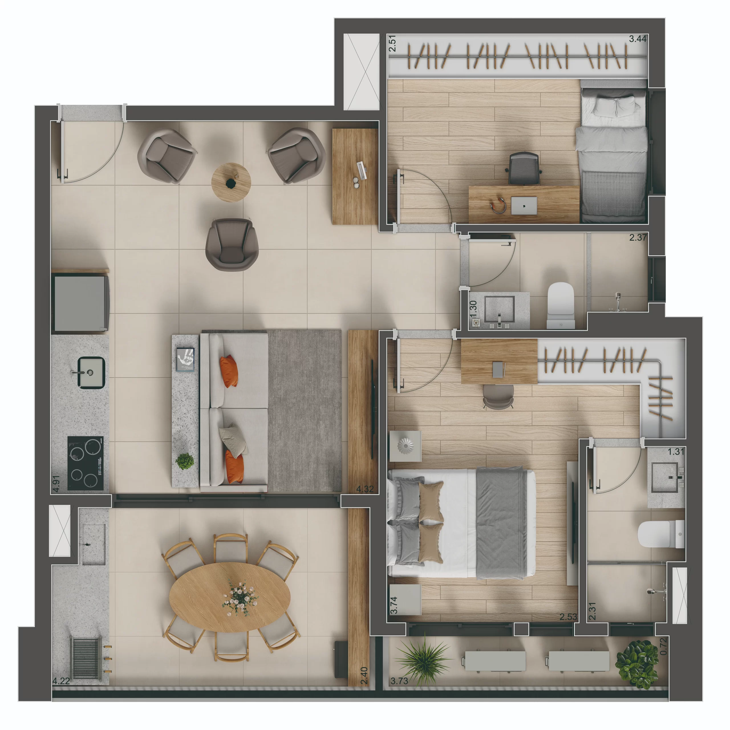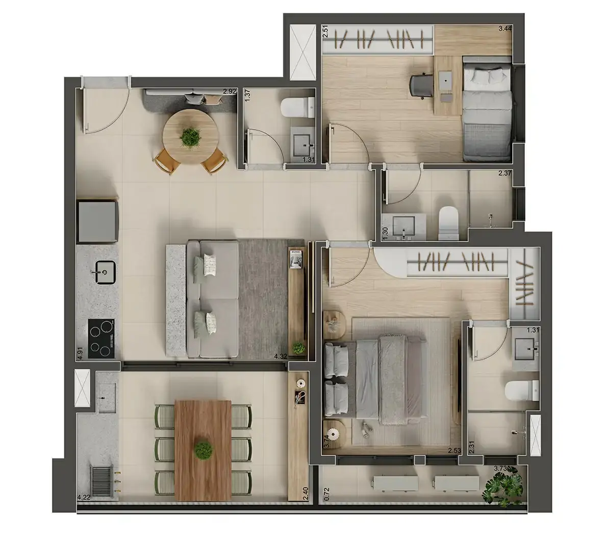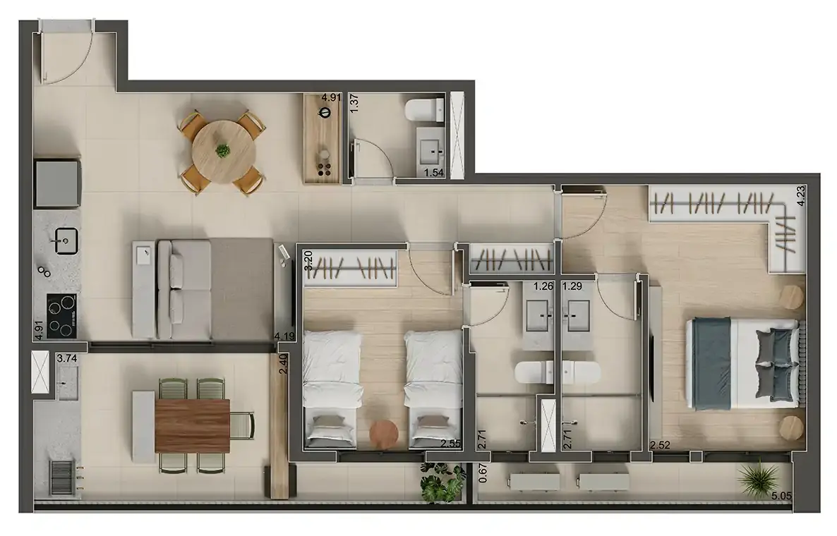 >> Imagens da Planta de 69 m²Perspectivas dos Apartamentos